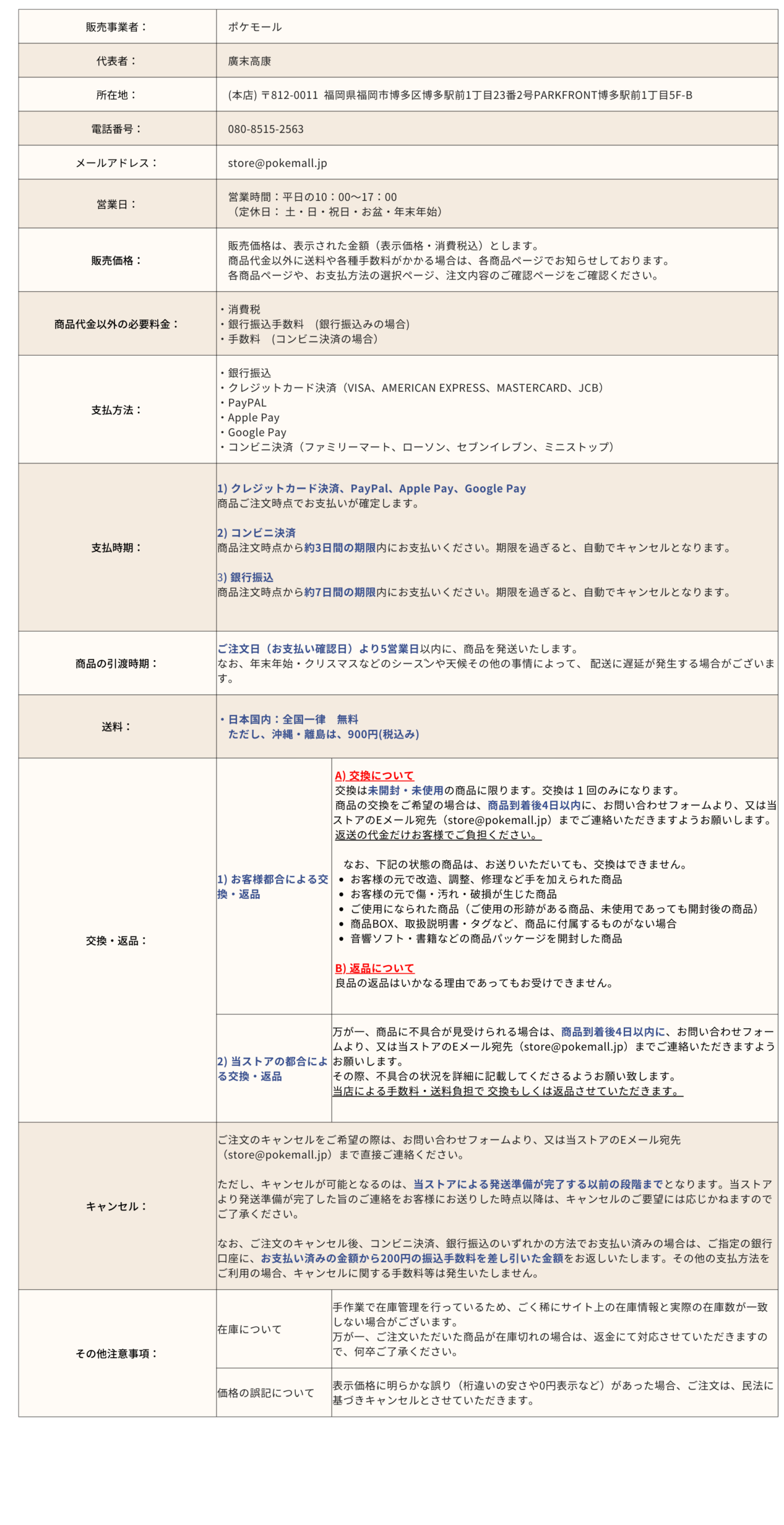 特定商取引表示